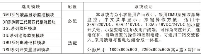柜体数与模块数、馈线回路数、电池容量及直流电压等因素相关,以220VDC系统,柜体尺寸(mm)2260×800×600为例,标配情况如下: